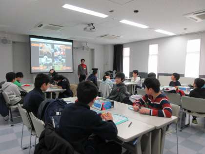 エネルギー教室ではまず部屋に入って座学で自動車の歴史や,