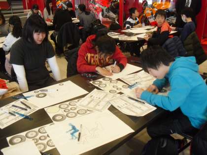 タイヤのシールをはります。タイヤの形も,ガタゴト,