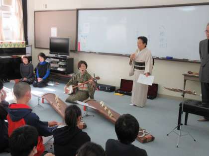 はじめにお琴と三味線についてのお話を聞きました。