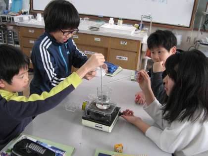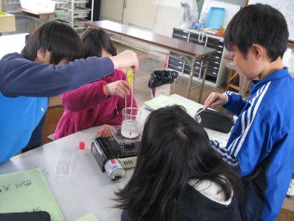熱したビーカーでミョウバンを溶かして種結晶をつくりました。