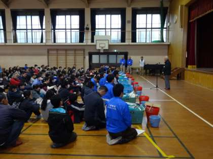 本日は,修学院小学校のおトイレをみんなで美しく掃除をしようという「便きょう会」を行っています。