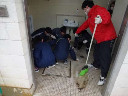 男子トイレの尿こしは,なかなか手ごわく,前日からクエン酸入りの水につけ,固いブラシで汚れを取りました。