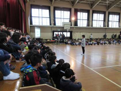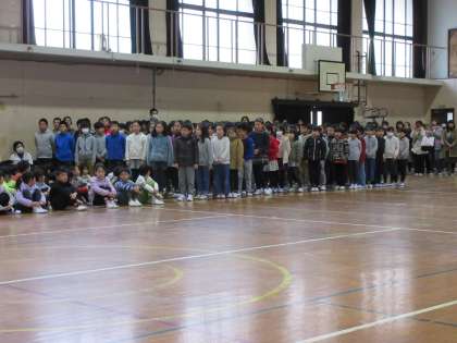 はじめの言葉に続いてさっそく4年生からのお祝いのだしものが