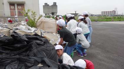 原水をきれいにするために,砂と砂利でろ過をする課程があります。その際に,使われる砂や砂利を触ることができました。砂の粒は1mmくらいで,触り心地はざらざらでした。