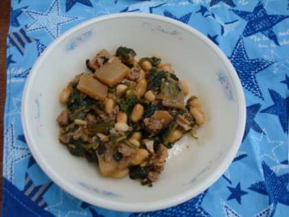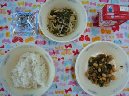「肉みそいため」には,栄養がたっぷりの大豆をたくさん使いました。