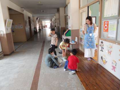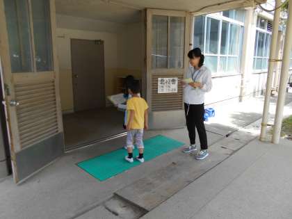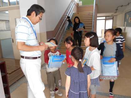 校舎をすべてまわると、ポイントの先生がシールをわたしてくれました。シールをはってもらった校内の地図は、2年生から1年生にプレゼントしてもらいました。