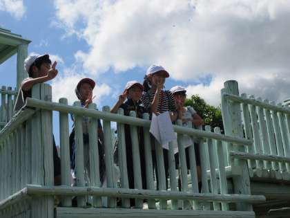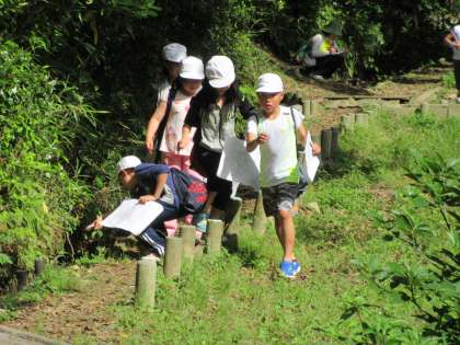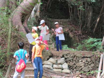 午後からの浦山フォトラリーでは,グループ内で,地図や写真を頼りに,浦山に設置されている数々のポイントを回ります。中でも,山のとりでに行くまでは上り坂ですが,とりでに上ると涼しい風が気持ちよく,満足感が味わえました。ゴールすれば,子どもたちにとっては格別に味が待っています。