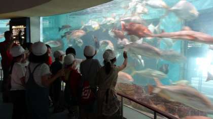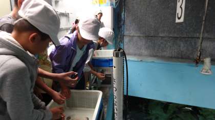 志摩マリンランドでは,館内の見学に加え,ペンギンタッチや魚のえさやりも体験しました。ドクターフィッシュやエイにも触ることもでき,「かわいい。」と嬉しそうな声や「うわっ。」と驚きの声がたくさん聞こえてきました。