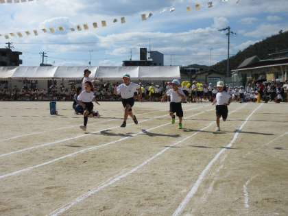 1年生の徒競走。小学校生活初めての運動会で徒競走直線50m。