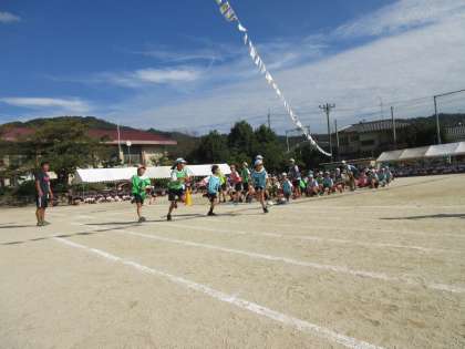 少ない練習回数でしたが,4年生から6年生で見事なバトンパスを