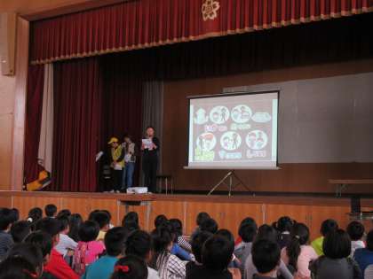 避難訓練に引き続いて体育館に移って防犯教室を開催しました。