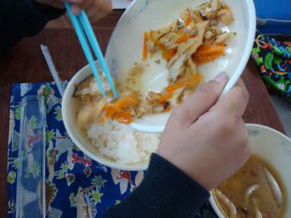 具をごはんに混ぜて「こぎつねちらし」にして食べました。