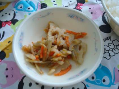 「根菜のごまいため」は,れんこんのシャキシャキとした歯応えがよく,