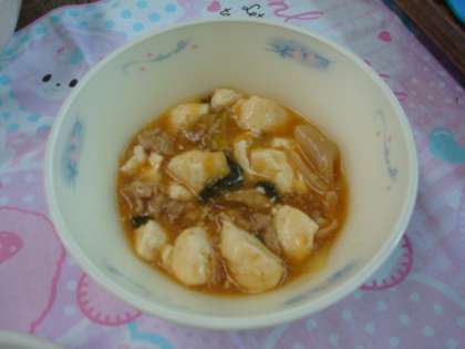 「とうふの四川風」には,豆板醤の香辛料を使いました。