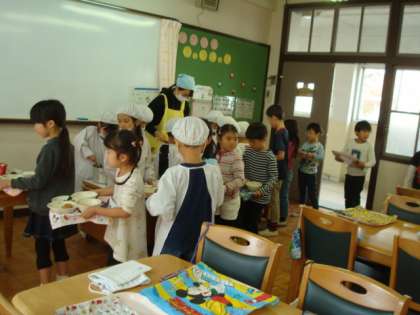 給食当番以外もできることをみつけて準備をしました。