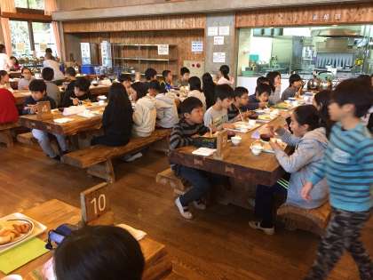 朝の集いの後は,朝食バイキング。みんなで楽しく朝食をとりました。たくさんのエネルギーを蓄え,雲取山ハイキングに備えました。外気温は5度。少々冷たい朝を迎えています。