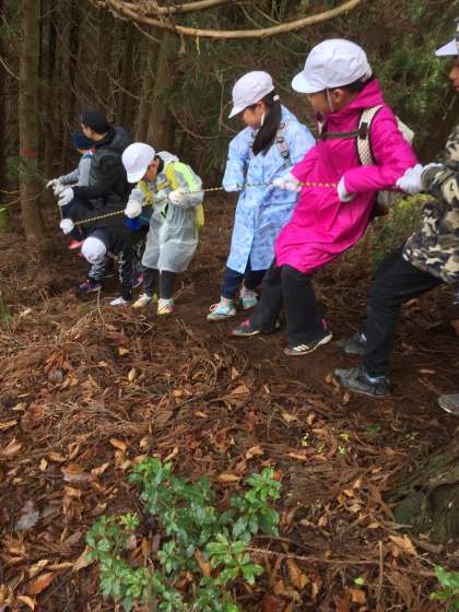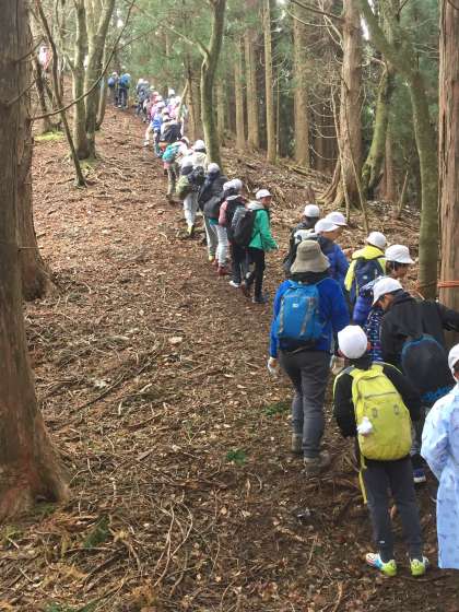 雲取山ハイキングが始まりました。今日は,通称「山のおっちゃん」と「キンちゃん」にお世話になりました。山のおっちゃんは,何度もおもしろい話を挟みながら,楽しい登山になるよう先頭を歩いていただいています。また,キンちゃんは,危ない所を行ったり来たりしながら,子どもたちの安全を最優先に考え,フル回転。みんなで頂上をめざしています。
