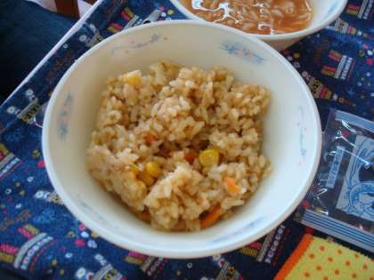 給食室の釜で炊いた「カレーピラフ」は,子どもたちに大人気でした。