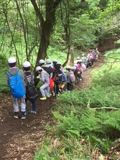 下りもなかなか厳しいコースです。少し滑るところもあり,気が抜けません。途中で,琵琶湖が一望できるところもありました。今日は曇っているにも関わらず,きれいに琵琶湖が見えるには稀とのkぽとでした。何か儲けたような気持になりました。