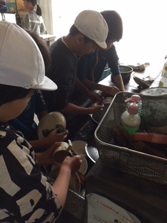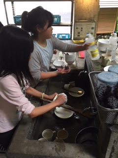 食べた後は,みんなで後始末。皿の汚れ,鍋の汚れなど,合言葉は,「来たときよりも美しく」です。