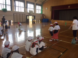 朝夕はずいぶん涼しくなりました。しかし,日中はまだまだ強い日差しを感じます。学校では2学期が始まり,2週目に入りました。今日も,1校時から,体育館では,1年生が団体競技「デカパンリレー」の練習に力が入っていました。また,運動場では,2年生が団体演技の隊形練習に励んでいました。そして,保健室では,夏休み明けの健康診断で4年生が,保健指導中でした。内容は,「熱中症予防」です。「帽子をかぶる,給水は運動前に,休息は日陰で・・・」というように,当たり前にできるよう,みんなで確かめ合いました。