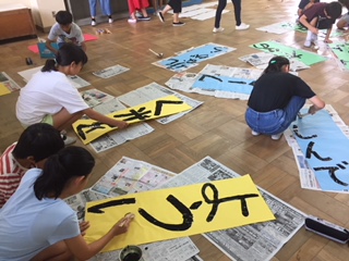 今日の6校時に,運動会に向け,係活動(高学年)を行いました。体育館では,応援団のみんなが,威勢よくエール交換を本番さながらに行いました。また,運動場では,児童会のみんなが開閉会式の進行の手順を確認していました。また,教室では、各色のオリジナルスローガンづくりに励んでいました。運動会まで,あと2週間。気運はどんどん高まっています。