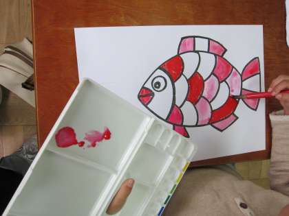 「わあ!きれいやなあ。」「どんどん色が変わっていくよ。」と,水を加えるだけで違った赤色や青色ができるだびに,はずんだ声が聞こえてきました。
