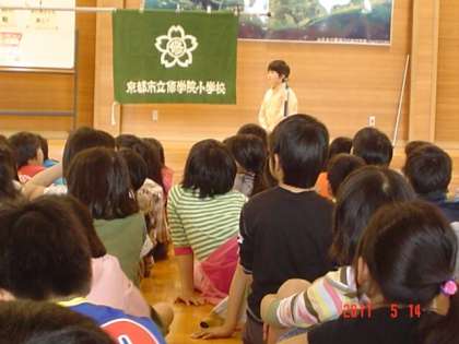 入所式では,大きな声で校歌を歌い,旗揚げをしました。
