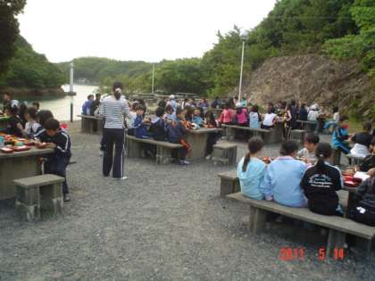 夕食は野外炊事場で食べました。