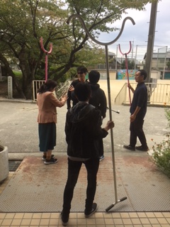 避難訓練終了後,サスマタの有効活用方法を警察から教えていただきました。
