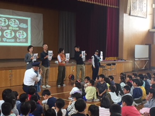 その後,子どもたちは体育館に移動し,PTA環境委員の方々や,下鴨警察の皆様にもお世話になり,防犯教室を行いました。その折に,みんなで確かめ合った「いかのおすし」は,いつも聞いているフレーズですが,今一度,みんなで「いかない・のらない・おお声を出す・素早く逃げる・すぐに知らせる」を確かめました。また,「おはしもて」も,下鴨警察の方からお話がありました。本会には,日頃,大変お世話になっている見守り隊の方々も参加いただきました。