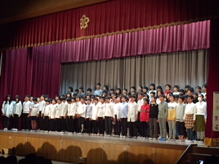 本日の学習発表会は,これをもって終了します。温かい応援をいただきました多くの方々に心より感謝申し上げます。皆様の拍手のお蔭で,子どもたちは,気持ちよくがんばることができました。有難うございました。