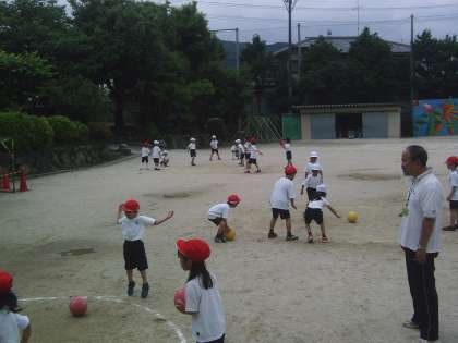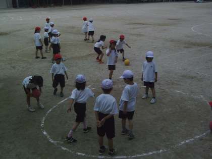 1年体育「ころがしドッジ」
