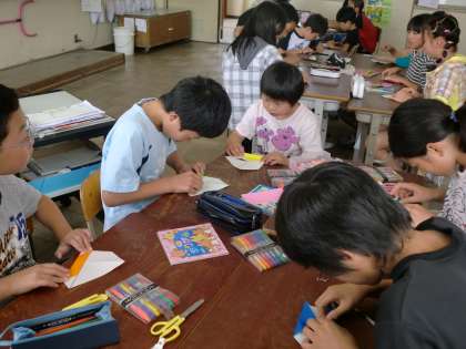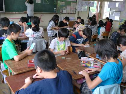 折り紙で遊んだ後は,みんなで「少年少女探検隊」を