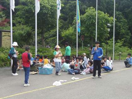 ディスクゴルフの後は、お待ちかねのジュースタイム。汗をかいた後のアップルジュースの味は格別でした。