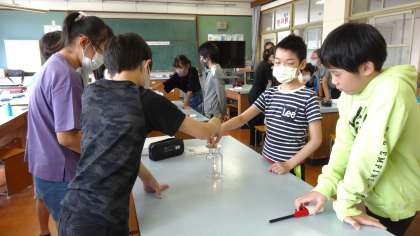 理科では「ものの燃え方」の学習をしています。対面式での学習が可能となり,今年度初めての理科室での実験を行いました。実験結果から,更なる疑問や追究する思いを広げ,日常生活と関連させながら学びを深めていってほしいです。