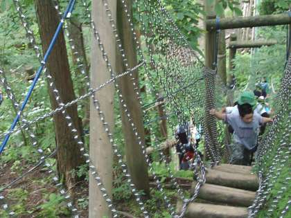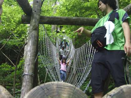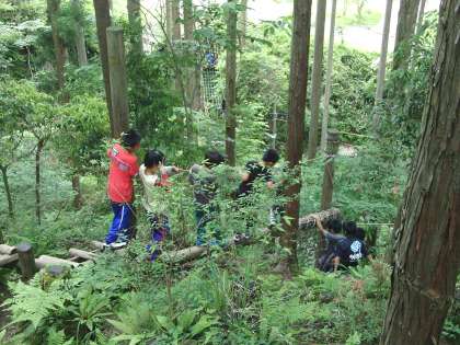 2:00〜冒険の森で遊びました。曇りでしたが、時々、太陽の光が差し込む天気に子どもたちも汗びっしょりです。