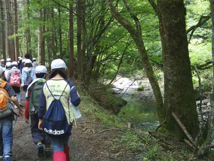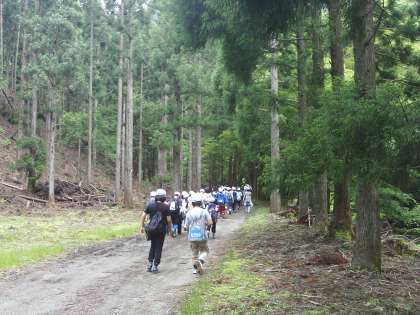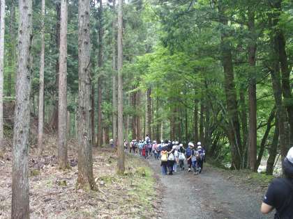 木におおわれた自然道を歩きます。川の音が聞こえます。鳥の声も聞こえます。誰かの「ふあ〜」という溜息も聞こえます。あと少しがんばれ!