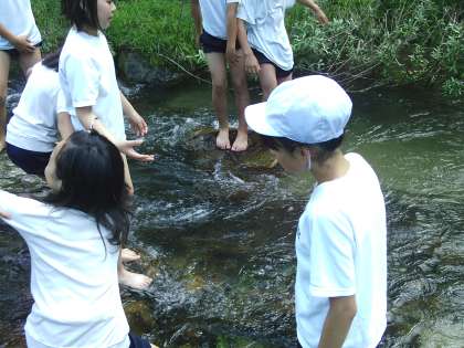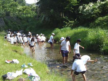 初めは、おそるおそる入っていた子どもたちでしたが、ちょっと濡れてしまえば…。