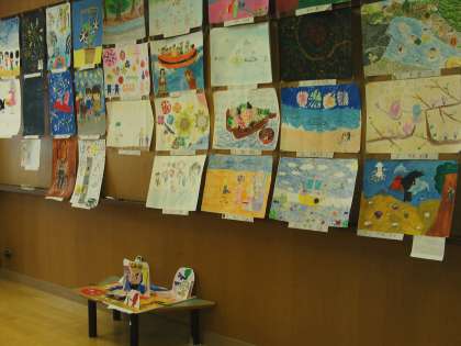 同窓会主催の絵画展の準備を行いました。夏休みに描いた絵画(1〜3年)を子どもホールに展示しました。この取組は、本年度から始まりました。今までは、3〜6年対象の書き初め展だけでしたが、本年度より同窓会役員の方々のアイディアで始めることになりました。