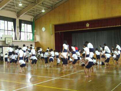 運動会の練習が始まっています。6年生はいつもの組み体操です。例年の如く、この時期は組み体操はなかなか進みません。成長著しい6年生ですが、なかなか思うようにできないようです。しかし、本番を乞うご期待。