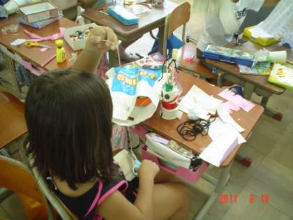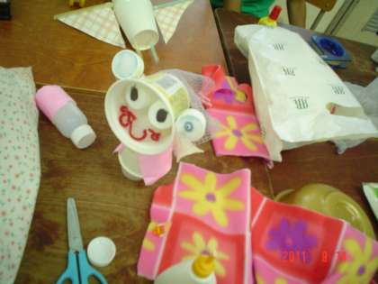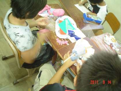 2年生は図工の学習で「おしゃれな動物たち」をつくっています。布や紙コップ・綿などを使って動物たちがいっぱいできています。オリジナルの動物もいるようです。たくさん並べると動物園のようになりそうです。