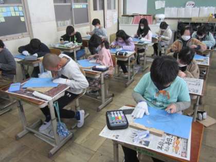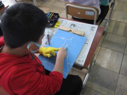 こわごわ彫っていた様子でしたが,少しずつ慣れてきたようです。