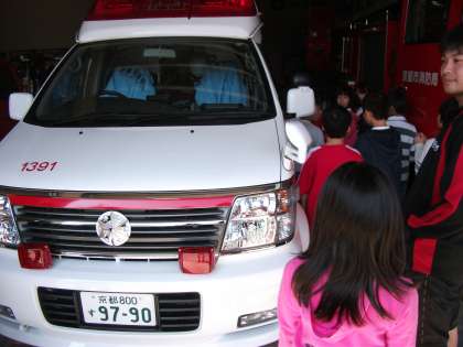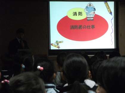 消防署では,お話を聞かせていただいたり,質問をさせていただいたり,消防車や救急車を見せていただいたりしました。消防署のみなさんありがとうございました。