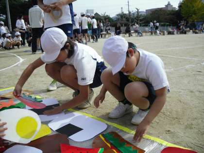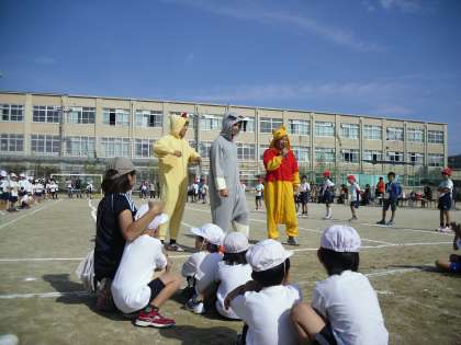 ひまわり学級は今日葵小学校に「はかよし運動会」に行きました。左京南支部の育成学級の友達や葵小学校の子ども達といっしょに運動会を楽しむことができました。「どうぶつ」(の着ぐるみを着た先生)達と競争したり,(紙の)「お弁当」を作ったりとみんな力いっぱい運動することができました。また,いろいろな友達と交流していきたいと思います。