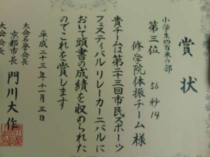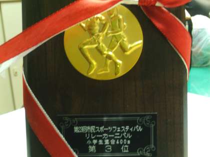小学生男女混合400mリレーで、本校チームは第3位になりました。