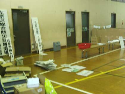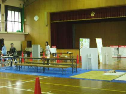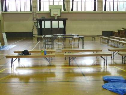 写真は、準備が進む体育館の様子です。防災訓練は、明日(6日)午前9時に地震発生という想定で始まります。多くの地域の方々の参加をお願いします。