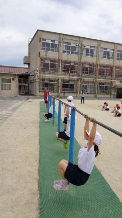 体育で鉄棒をしました。ぶら下がってみることと,「つばめ」という技を練習しました。
