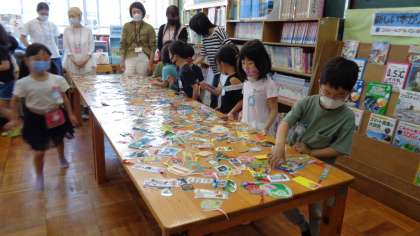 図書ボランティアのみなさんが,本当にたくさん作ってくださったしおり。