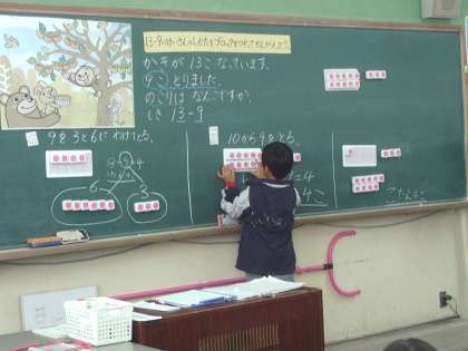 「13−9」の計算の方法をブロックを使って考えよう。というめあてで進めました。